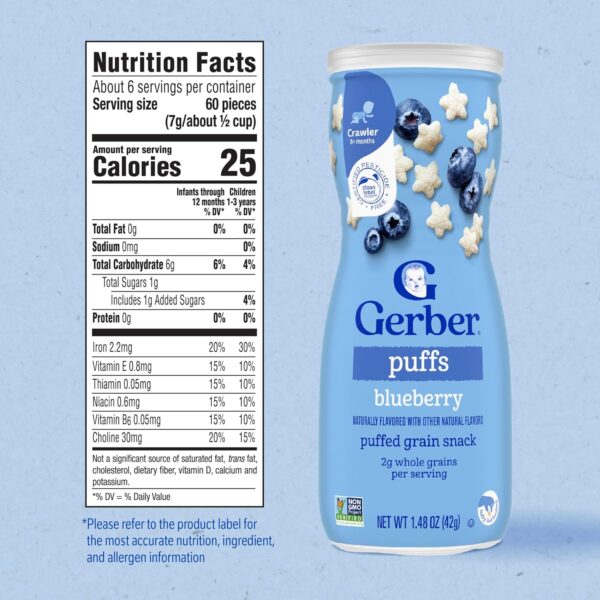 Be the first to review “Gerber Snacks For Baby Grain Blueberry Puffs 8+ Months 42g” Cancel reply